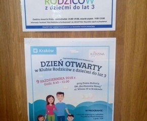W dniu 9 października 2018 r. w Klubie Rodziców z dziećmi do lat 3 w uroczystym otwarciu Klubu uczestniczył Prezydent Miasta Krakowa - w prof. Jacek Majchrowski. Klub działa przy Domu Kultury SM Kurdwanów Nowy ul. Witosa 39 w Krakowie. Serdecznie zapraszamy. Zadanie jest finansowane ze środków Gminy Miejskiej Kraków.
