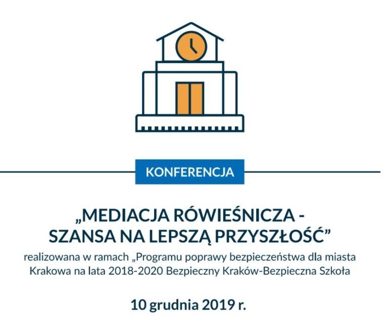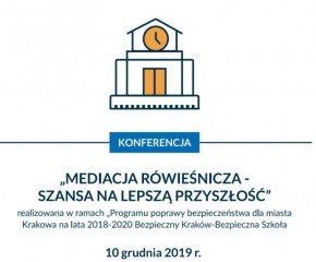 W dniu 10 grudnia 2019 r. w Nowohuckim Centrum Kultury w Krakowie odbyła się konferencja, pt. „Mediacja rówieśnicza - szansa na dobrą przyszłość” stanowiąca