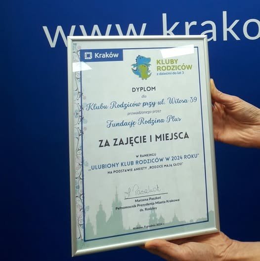 W roku 2024 Klub Rodziców w Kurdwanowie zdobył I MIEJSCE w rankingu "Ulubiony Klub Rodziców w 2024 roku" na podstawie ankiety "Rodzice mają głos!"Dziękujemy za wszystkie oddane głosy.