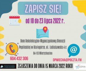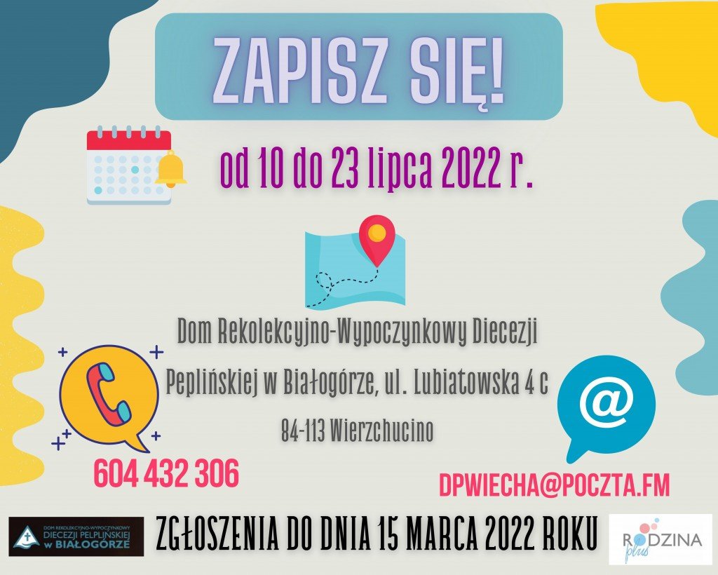 Fundacja Rodzina Plus zaprasza serdecznie rodziny zastępcze (spokrewnione, niezawodowe, zawodowe) oraz rodziny prowadzące rodzinne domy dziecka i placówki opiekuńczo-wychowawcze typu rodzinnego z Krakowa i województwa małopolskiego na Wczasy Rodzinno-Wypoczynkowe nad morzem w terminie od 10 do 23 lipca 2022 roku w Białogórze. Szczegółowe informacje zawarte są w załączonej ofercie (liczba miejsc jest ograniczona, cena za 2 tygodniowy pobyt jest wyjątkowo atrakcyjna i zróżnicowana dla dorosłych i dzieci ). W razie pytań prosimy o kontakt